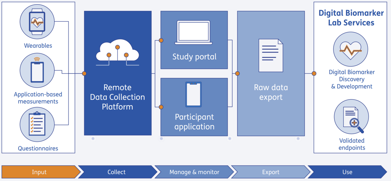 Services: digital biomarker discovery, validation and remote data collection