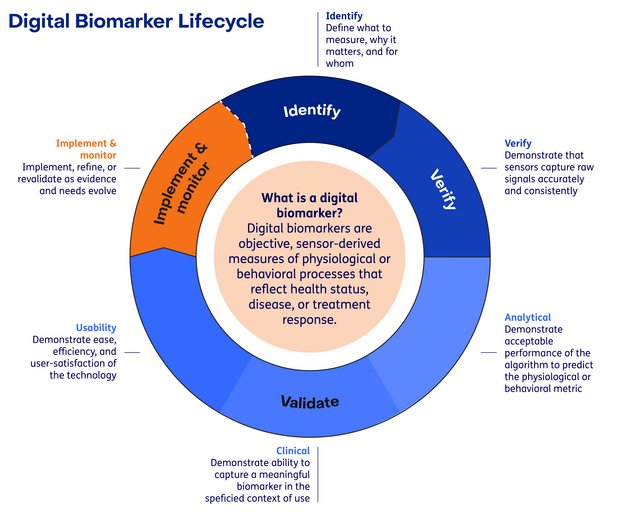 To ensure this transformation and that digital biomarkers are fit for purpose, their development and evaluation can be structured using established frameworks such as the Digital Medicine Society’s ( DiMe) V3+ framework for verification and validation, together with the Digital Measures That Matter framework, which anchors measurement selection in patient -meaningful aspects of health.